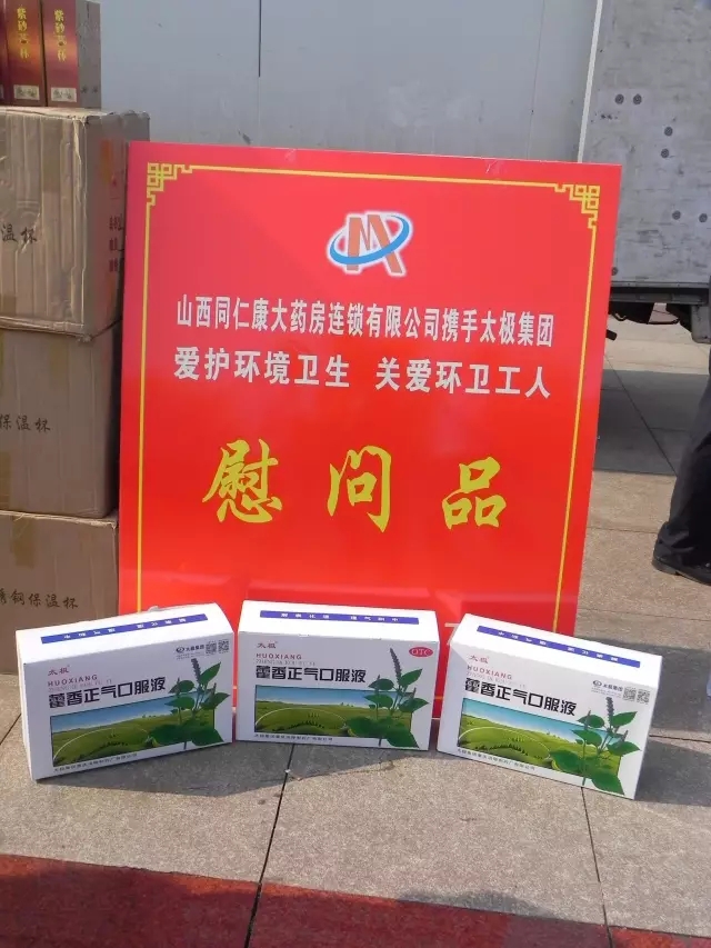 能征敢戰(zhàn),奮勇當(dāng)先,山西同仁康大藥房連鎖有限公司為積極響應(yīng)離石區(qū)“聯(lián)創(chuàng)”活動在7月20日參加了離石區(qū)工商聯(lián)(總商會)主持開展的“愛護環(huán)境衛(wèi)生、關(guān)愛環(huán)衛(wèi)工人”夏季送清涼活動。活動期間,山西同仁康大藥房連鎖有限公司贈送了價值5000元的慰問品,彰顯了同仁康勇于承擔(dān)責(zé)任,回報社會的企業(yè)精神。